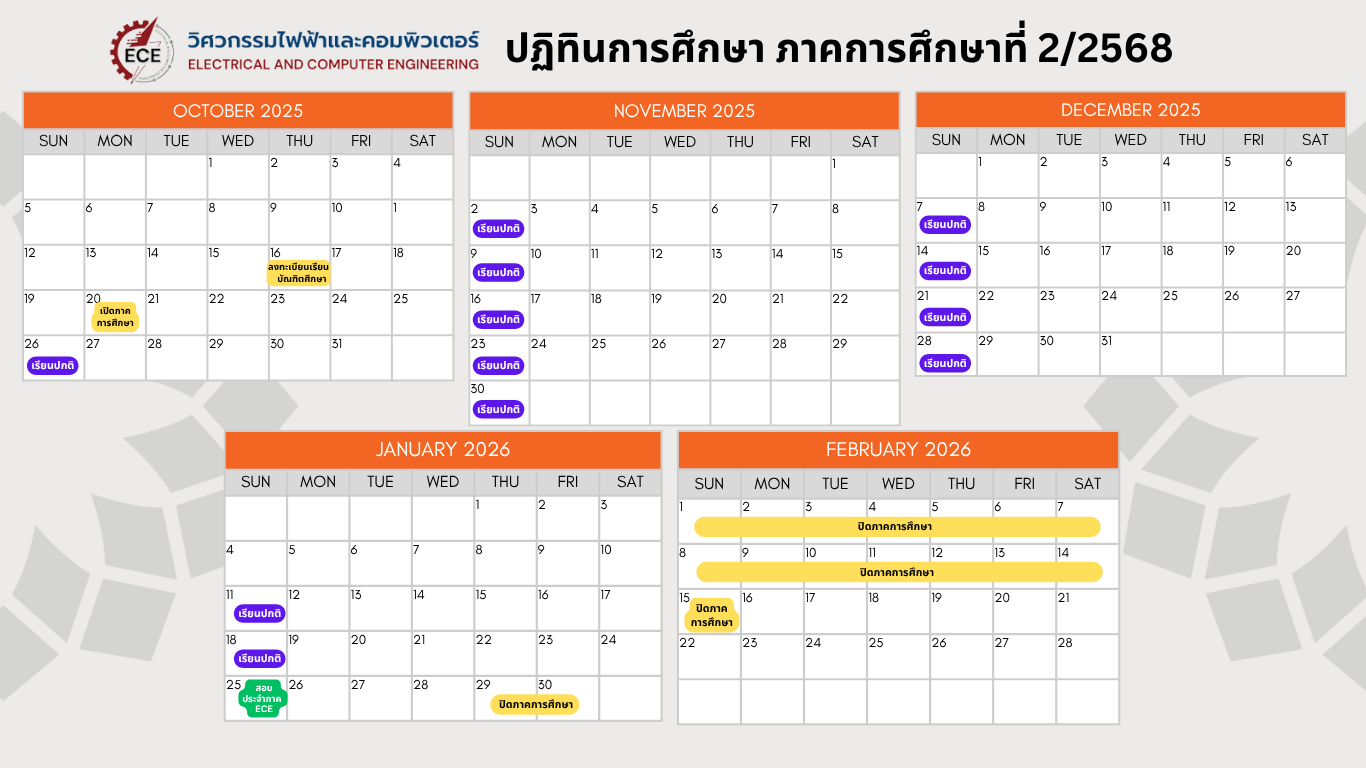 ปฏิทินการศึกษาภาคการศึกษาที่ 2/2568 – หลักสูตรวิศวกรรมไฟฟ้าและคอมพิวเตอร์