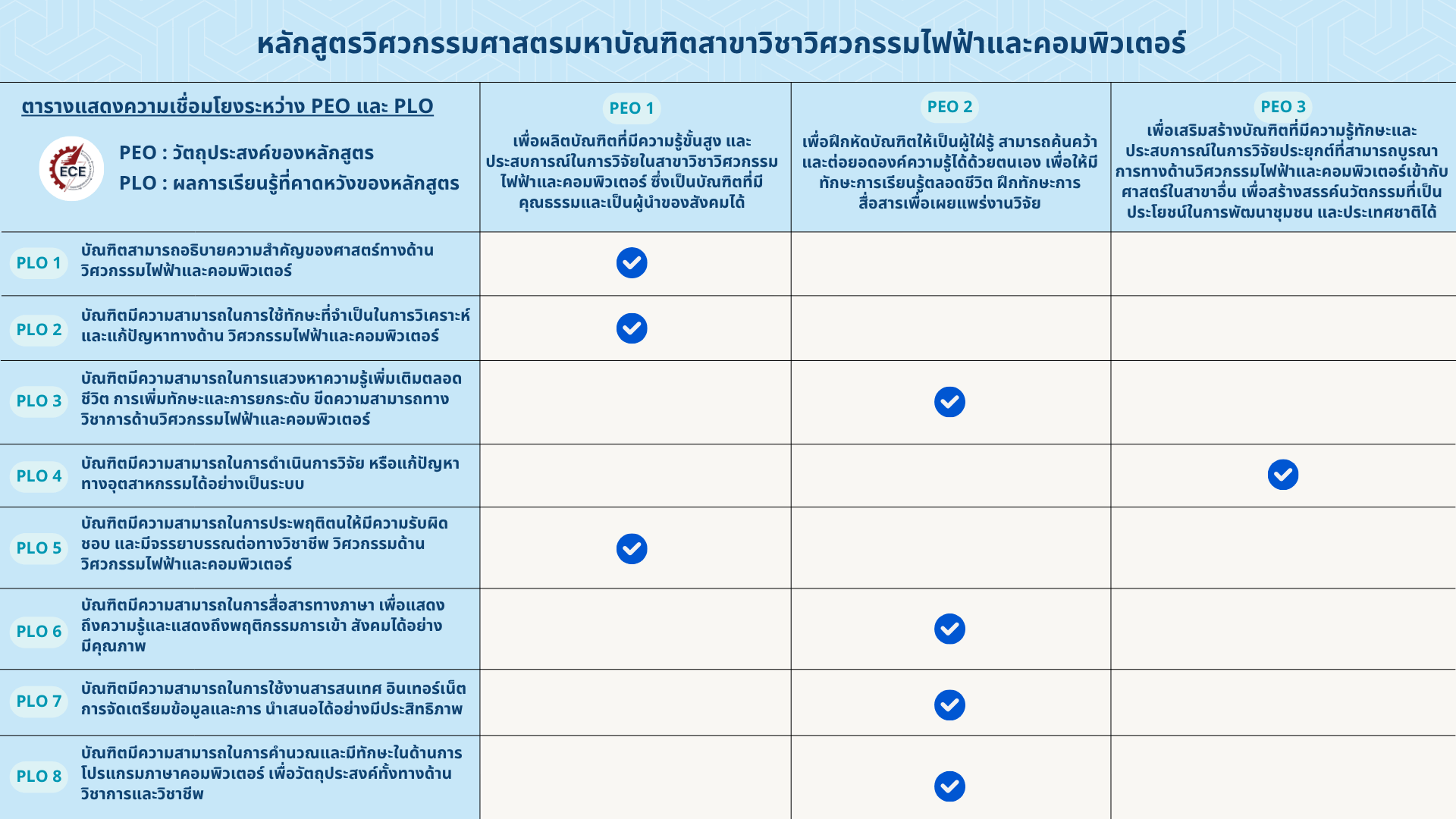 พัฒนาบัณฑิตที่สามารถประยุกต์ใช้ความรู้ใหม่ทางด้านวิศวกรรมไฟฟ้าและคอมพิวเตอร์