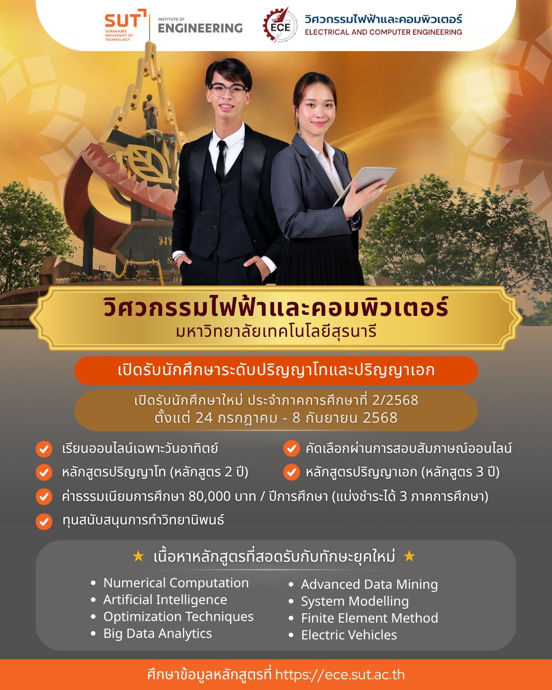 ศึกษารายละเอียดข้อมูลหลักสูตรได้ที่ https://ece.sut.ac.th